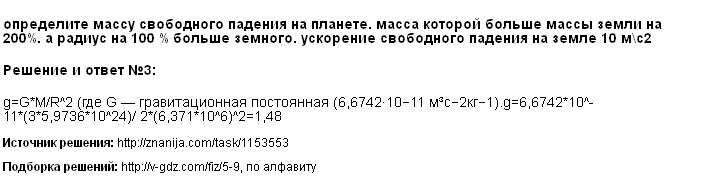 Определите ускорение свободного падения на планете, масса которой больше массы Земли на 200 %, а радиус на 100 % больше земного. Ускорение свободного падения на Земле считайте 10 м/с^2.