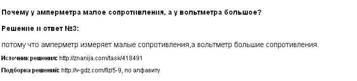 Главная / Подборки ГДЗ и решения по физике / Гдз и решения по физике за 5, 6, 7, 8, 9 классы / Почему у амперметра малое сопротивление, а у вольтметра большое?