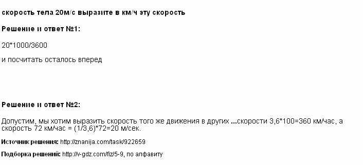 Скорость тела 20м/с. Выразите в км/ч эту скорость