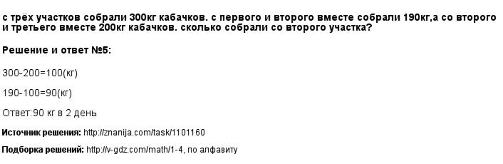С трёх участков собрали 300 кг кабачков. С первого и второго участка вместе собрали 190 кг, а со второго и третьего вместе 200 кг кабачков. Сколько килограммов кабачков собрали со второго участка?