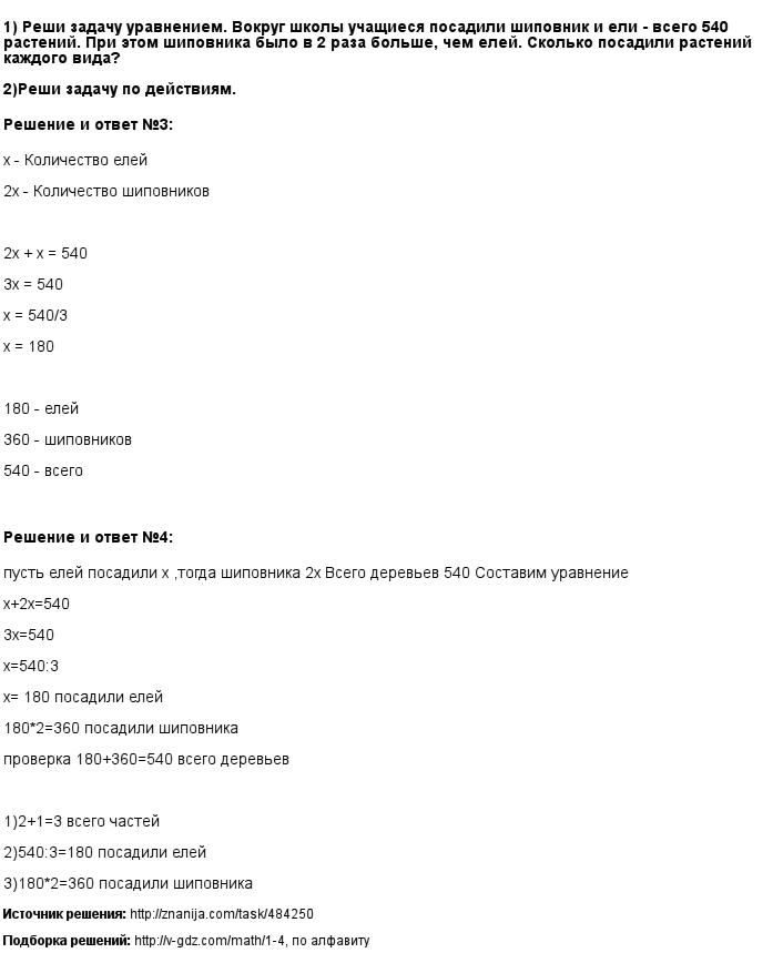 Вокруг школы учащиеся посадили шиповник и ели - всего 540 растений. При этом шиповника было в 2 раза больше, чем елей. Сколько посадили растений каждого вида?