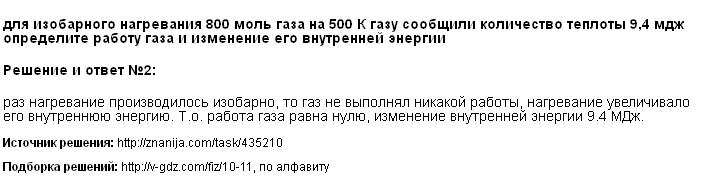 Для изобарного нагревания 800 моль газа на 500 К газу сообщили кол-во теплоты 9,4 МДж. Определите работу газа и изменение его внутренней энергии.