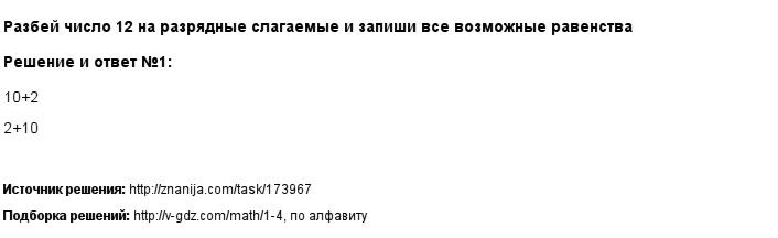Разбей число 12 на разрядные слагаемые и запиши все возможные равенства.