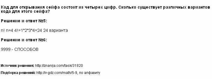 Код для открывания сейфа состоит из четырех цифр. Сколько существует различных вариантов кода для этого сейфа?