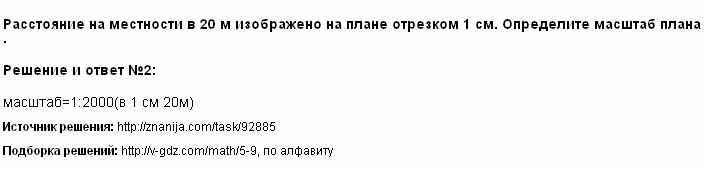 Расстояние на местности в 20 м изображено на плане отрезком 1 см. Определить масштаб плана.